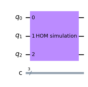 However, when using two photons it gets a lot more interesting. We see that when the photons enter into different ports and are fundamentally ‘indistinguishable’ an effect occurs leading to the two photons always being together in any of the outputs. This ‘bunching’ is known at the HOM effect, named after Hong, Ou and Mandel (see their paper “Measurement of subpicosecond time intervals between two photons by interference” which mentioned in the references for this notebook)