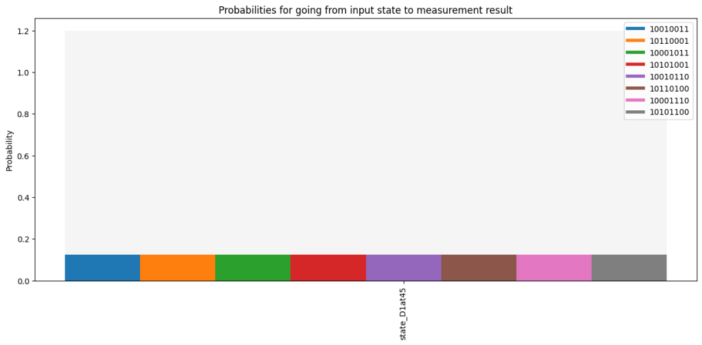 Finally we are ready to run the simulation by calling circuit.evaluate_circuit(collection_of_states_input=initial_collection_of_states). The result is collection of states at the output. We are only interested in results where meet three conditions: