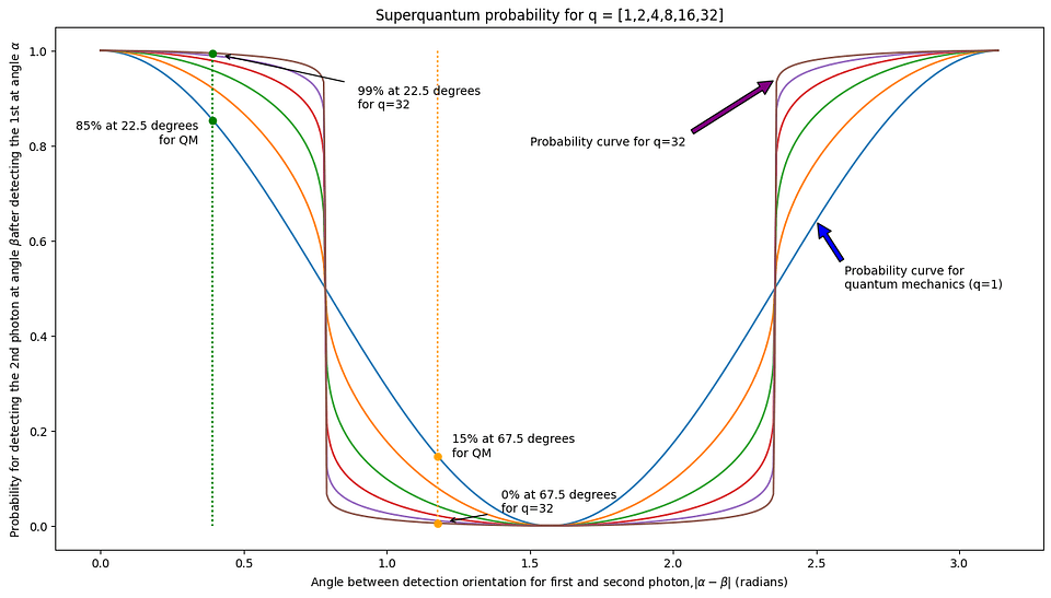 - We expect that the shape of the correlation curve changes for different q-values, reflecting the ‘superquantum’ entanglement.