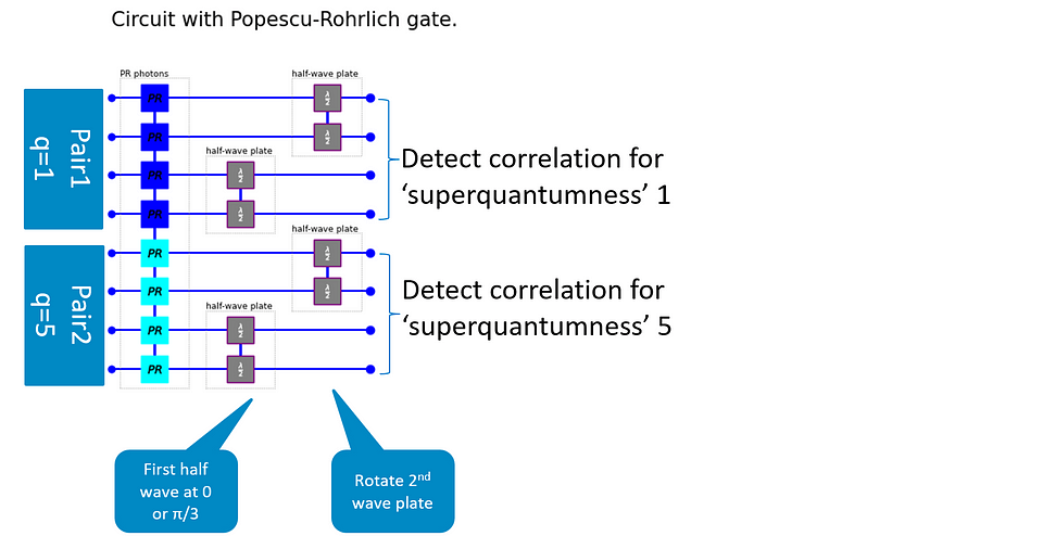 The Popescu-Rohrlich photons show ‘superquantum’ behavior. Note that individually, these photons still behave as ‘normal’ photons. The only change we made is in their entanglement properties.